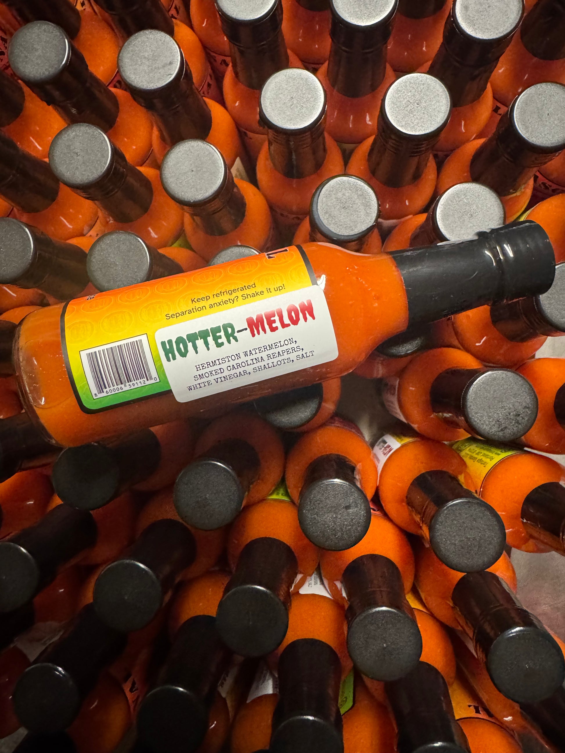 Carolina Reapers lightly smoked and fermented with Hermiston watermelon and shallots
